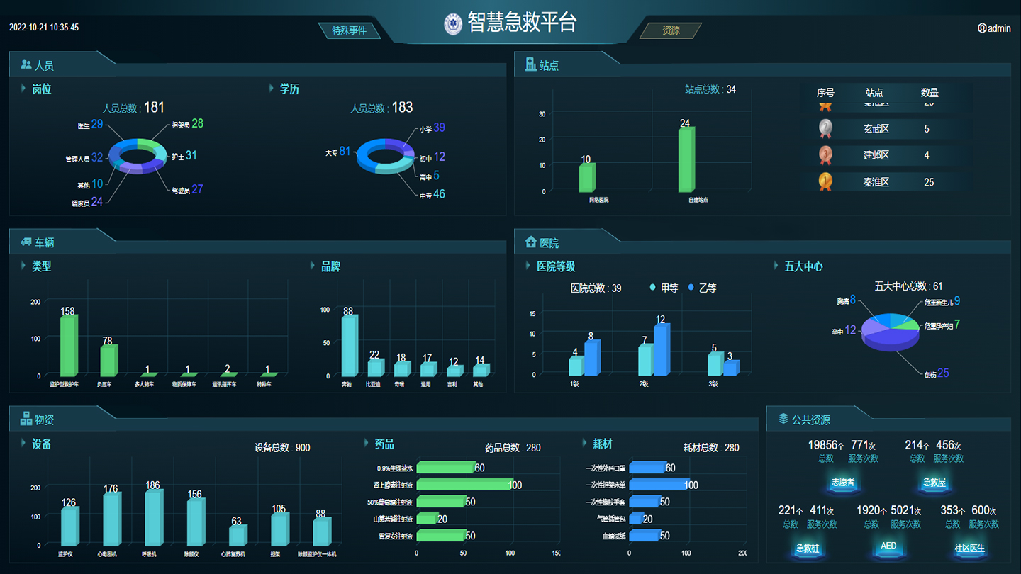 ? ? ? 系統(tǒng)實(shí)現(xiàn)了對(duì)全市120急救中心在不同時(shí)間段,不同急救分站的實(shí)時(shí)動(dòng)態(tài)監(jiān)測(cè)分析,通過對(duì)各項(xiàng)院前質(zhì)控指標(biāo)數(shù)據(jù)圖形化分析和研判,實(shí)時(shí)對(duì)全市120危急值的管控,為應(yīng)對(duì)突發(fā)事件提供科學(xué)決策依據(jù),實(shí)現(xiàn)了急救效率核心指標(biāo)的可視化,可控化,提升了院前急救的服務(wù)質(zhì)量和救治效率。
