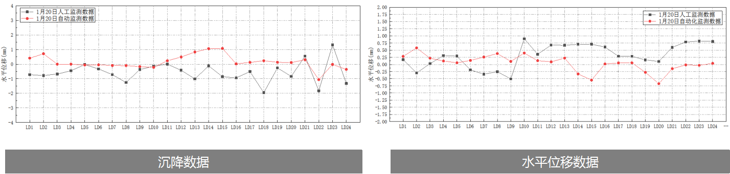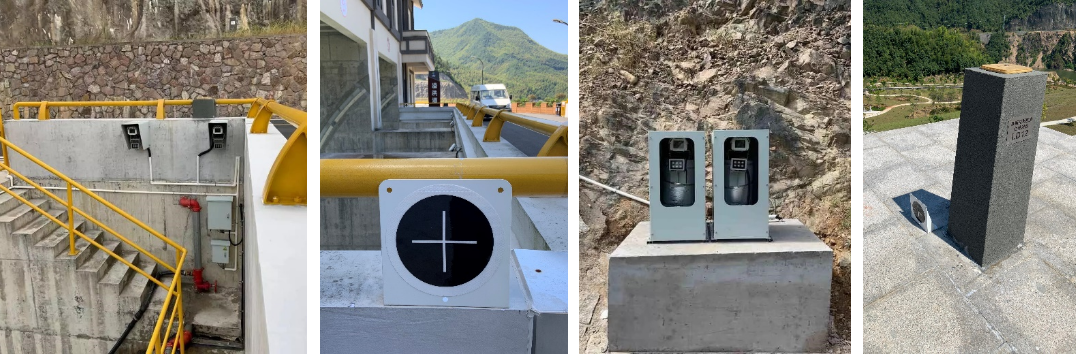 基于機器視覺的表面位移智能測量,進行監(jiān)測時,在待測結(jié)構(gòu)物上布設(shè)若干靶標,在相對結(jié)構(gòu)物穩(wěn)定的位置安裝機器視覺智能測量儀,機器視覺智能測量儀識別結(jié)構(gòu)物上的靶標圖像,當被測結(jié)構(gòu)物發(fā)生平面位移時,靶標坐標隨之變化,從而測量到被測物的水平與垂直雙向位移。